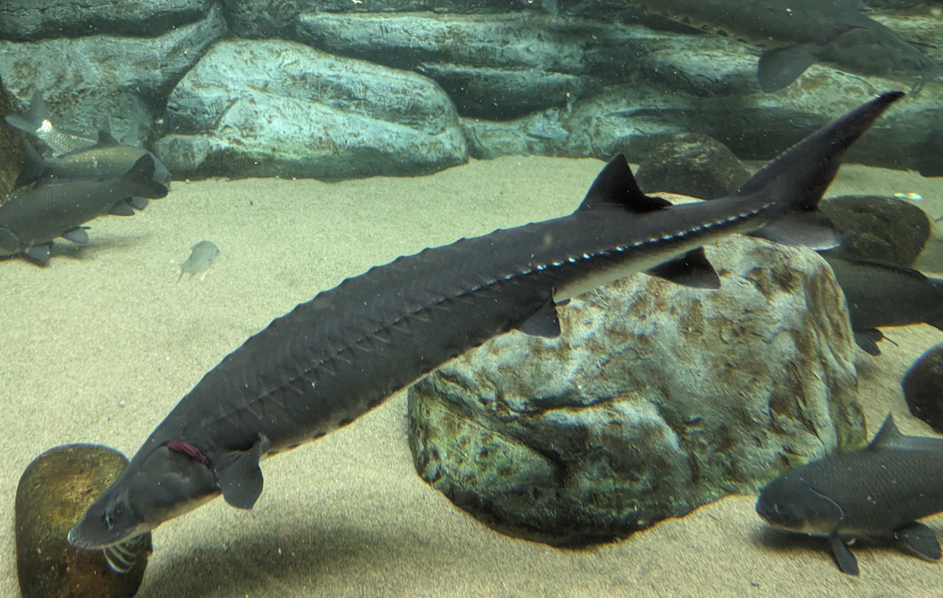 Lake Sturgeons (Acipenser fulvescens) can be found in the Great Lakes and at the Shedd Aquarium on Lake Michigan.