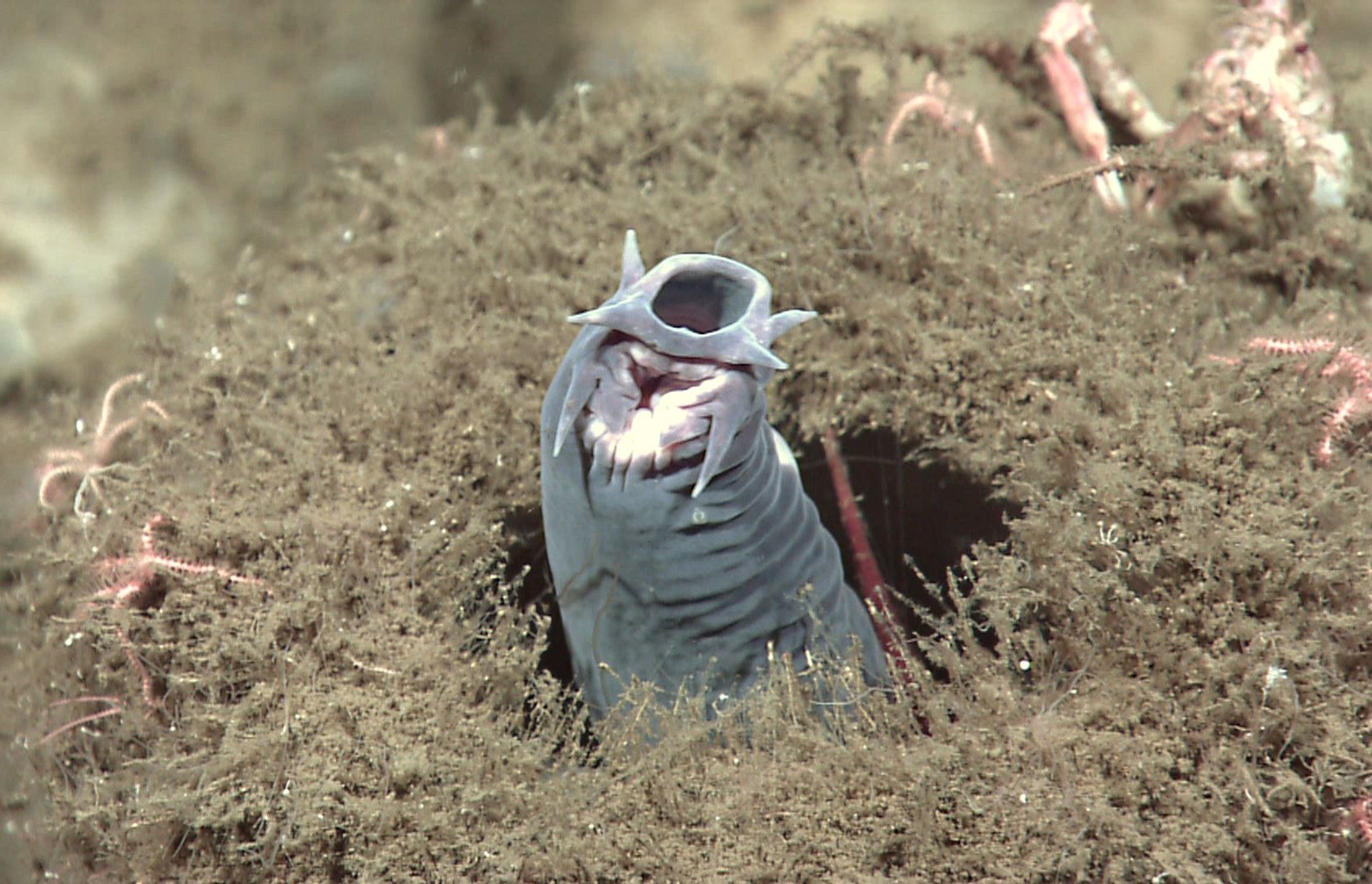 Hagfishes are found in "marine, temperate zones of the world, all oceans except the Red Sea, Arctic, and Southern oceans; only deep water in tropical areas. Jaws absent, no bones. Body naked, eel-like. No paired fins, no dorsal fin. Degenerate eyes. Laterally biting mouth bearing barbels. Teeth only on tongue plus one on 'palate'. Important predators (often scavengers) on invertebrates and others, e.g., netted fishes and discard. One of the most abundant groups of demersal fishes in many areas. Prey item for marine mammals and large predatory invertebrates. Only vertebrates with body fluids iso-osmotic with seawater. About 100 cm max length." - [Fishbase] As of 2024, 3 species of Myxiniformes have been observed in iNaturalist in the US and 11 throughout the world.