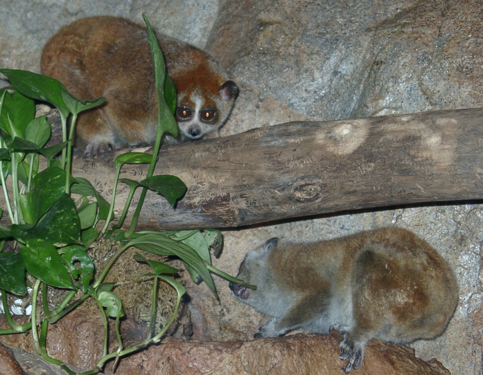 | These Pygmy Slow Lorises (Nycticebus pygmaeus) are in the suborder Strepsirrhini, the prosimians.