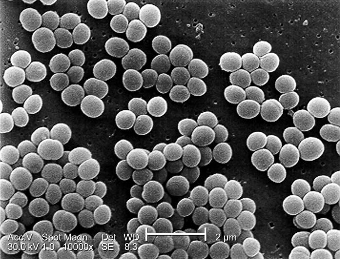 | Staphylococcus species' are common on and in the human body but some can cause disease. [Public Domain]