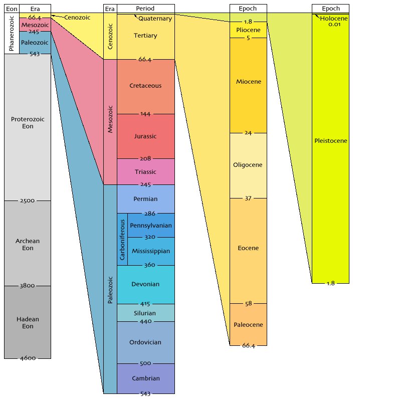 But here's the graphical representation anyway. At the very least, it will give you something to refer to when discussing geologic time periods.