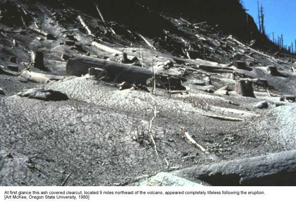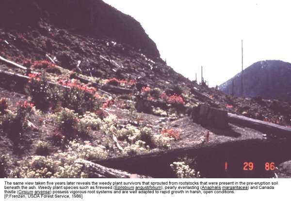 Even after a major volcanic eruption, it doesn't take long for life to return to the scene, as shown here at Mt. St. Helens.